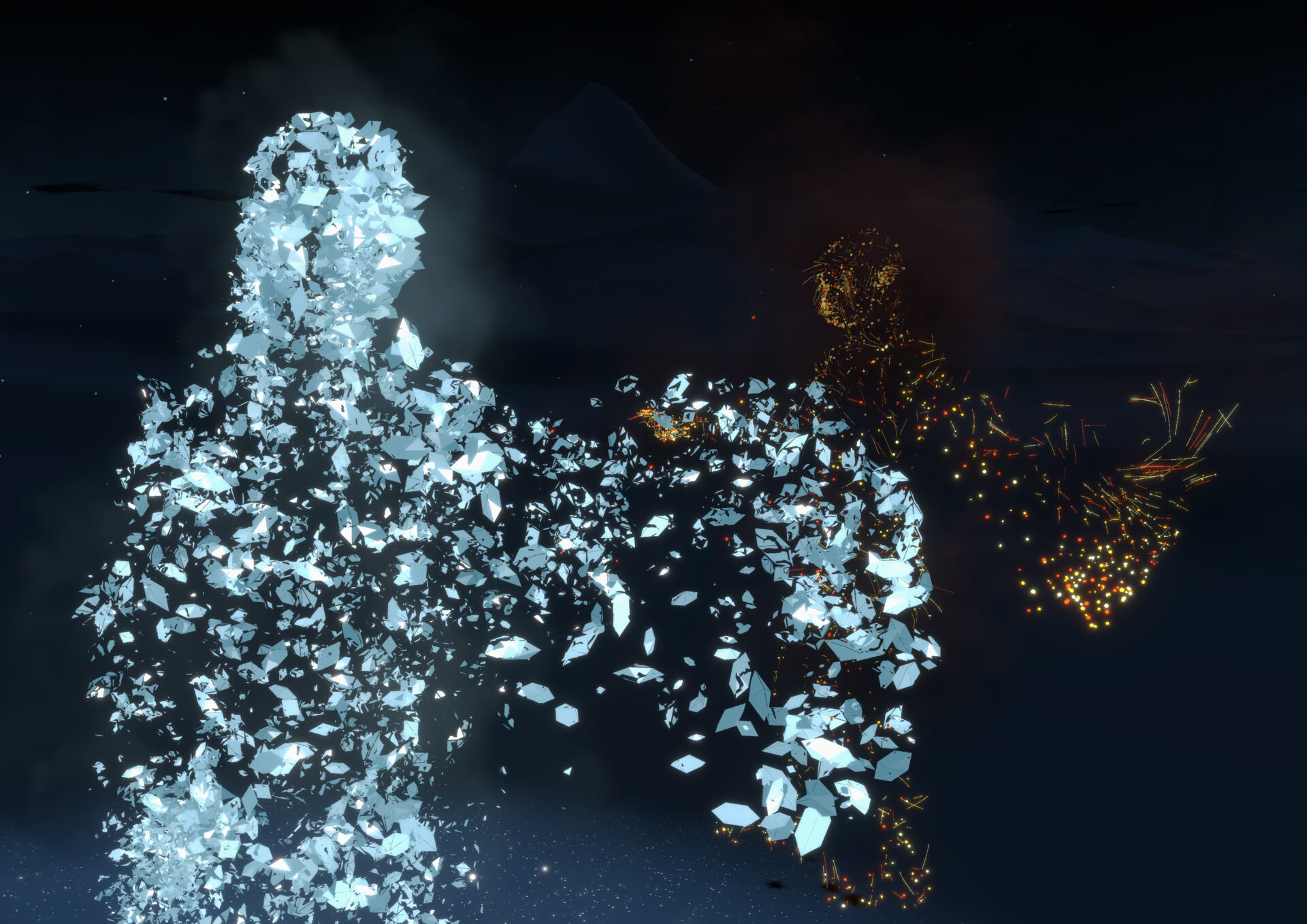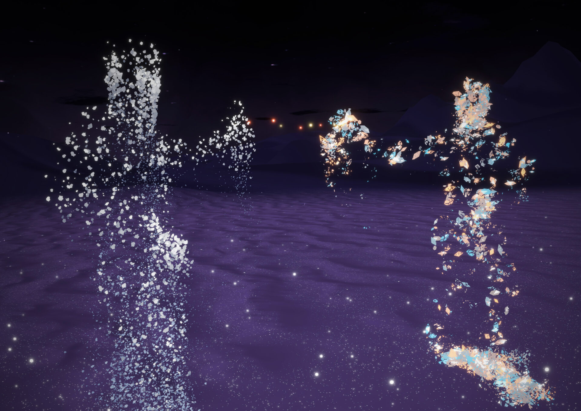 Les gestes des personnes participantes sont analysés en temps réel par l’intelligence artificielle pour générer un avatar unique, associé à un élément naturel (braises, nuages, poussière, pluie…). Hors casque, ces avatars dansants alimentent une fresque vivante, trace collective en perpétuelle transformation. Une installation de danse décentralisée, créée par et pour le public.