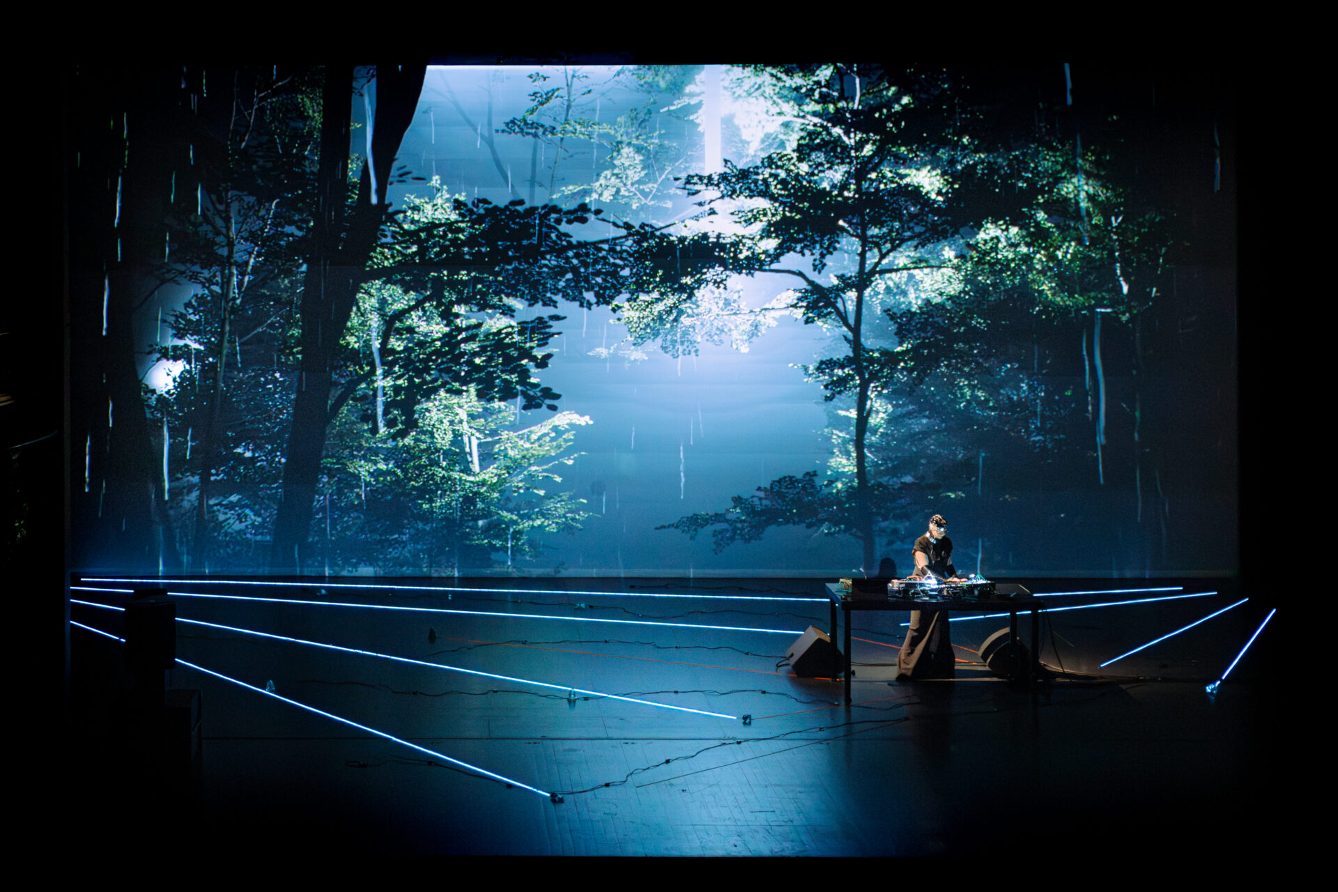Cette œuvre fait naître des images fantasmagoriques d’Hugo Arcier et d’Annabelle Playe, plongeant le public dans une immersion totale, à l’intérieur d’une science-fiction vivante et à travers une nature puissante, sauvage, voire inquiétante. Ce que l’on pense être la nature a en réalité été sélectionné, répertorié et façonné par la main humaine : s’agit-il ici d’un avant ou d’un après anthropocène, d’une simulation ou de notre planète ?